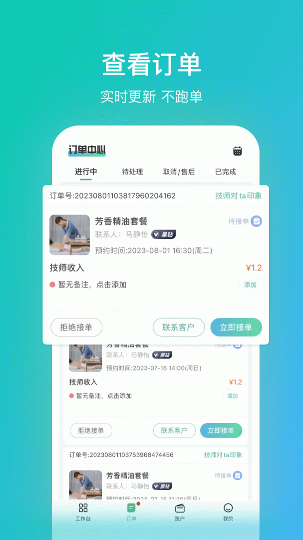2、查看订单,实时更新你的个人订单信息,随时都可以在上面看到你的订单内容