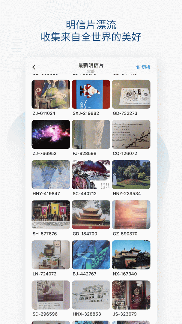 1、互寄明信片,通过平台与笔友随机交流明信片,也可组队参与互换明信片
