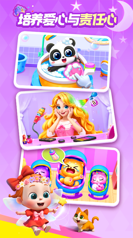 设计《手工调色》《魔力画笔》《动物拼贴》《涂色画本》等艺术启蒙互动,鼓励宝宝自由涂鸦绘画,感知色彩,开启绘画启蒙。引导宝宝在《公主宠物城堡》《时尚设计师》互动中,为公主和宠物设计百变造型,提升创造力与审美力。