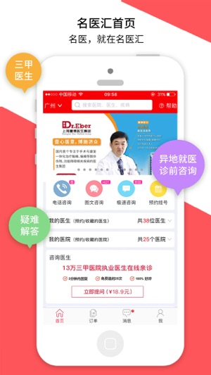 聚集京津沪三甲医院明星专家资源,倾力打造国内最红最专的妇儿医疗健康服务平台。重点提供热门妇儿、生殖、乳腺、皮肤、中医等医疗健康服务。从线上服务专家问诊预约、名医榜、专科义诊、医聊圈等,再到线下绿通就医、专业陪诊、专家出诊等等。名医汇最新成为北京114电话导航就医陪诊、专家出诊服务官方战略合作商。
