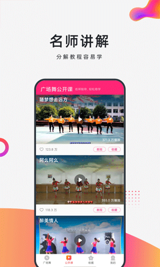 在这里汇集了海量各种广场舞视频,不同的舞蹈视频分类详细,用户可以自由选择不同的内容跟学,拥有详细的分解动作,海量公开课学习,还可以收藏各种舞蹈视频。需要的伙伴,即可使用哦