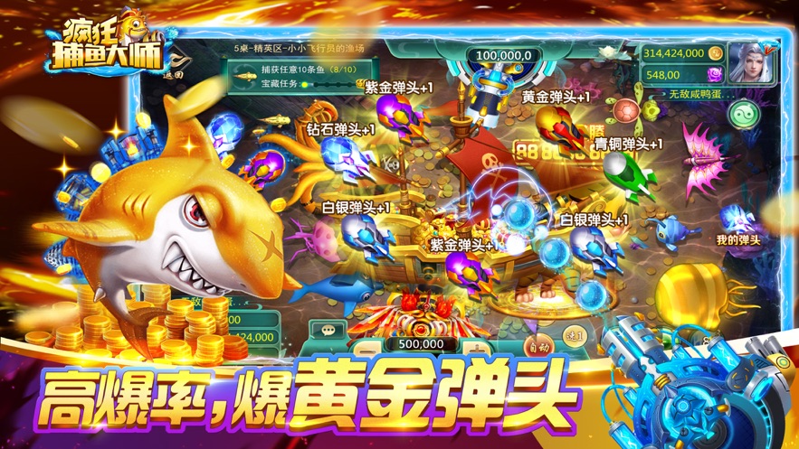 无需锻造,免费赠送百万钻石,升级捕鱼炮台,轻松提升500万炮,一炮可获得100亿金币,让人目不暇接,持续享受金币爆屏的超级快感!
