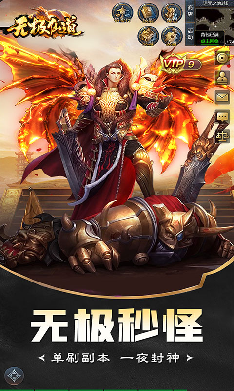 4、无极仙道再现了经典打金传奇玩法,战法道职业加持,装备爆装红名玩法重启,让玩家一起加入皇城再创传奇辉煌
