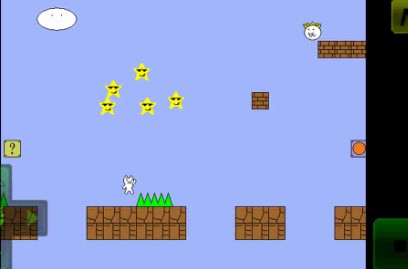 在这里我们的游戏玩法跟马里奥跟相似但是我们的主角是一只猫,这里面所有的关卡和陷阱可能都跟你意识中的陷阱关卡不同,在这里你会感觉得到什么是处处是惊喜,最重要的是你可以喊上你的小伙伴一起