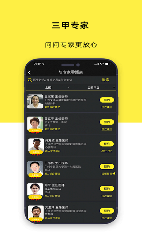 可按医生姓名、疾病名称、科室等信息进行医生搜索;