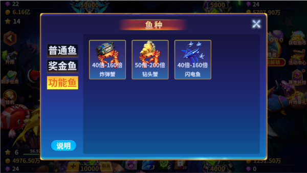 新增功能:增加了新的鱼类,包括金色鲨鱼、深海章鱼等,为玩家提供了更多的捕鱼选择。同时,新增了海底宝藏功能,玩家在捕鱼过程中有机会获得丰厚的奖励。
