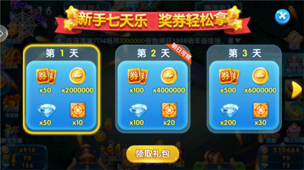2、全新玩法:渔券,渔场打鱼即可获得渔券,集渔券金币、弹头、战神碎片领不停!
