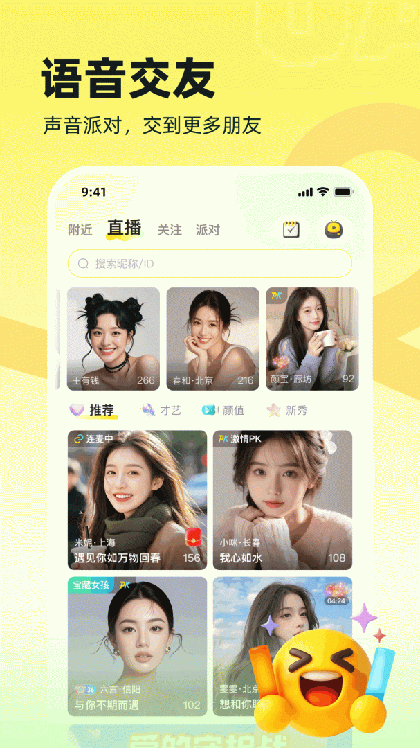这是一款高颜值与高才艺并存的社交聊天产品,海量美女帅哥汇聚在这里,每天都有不一样的精彩等着你,更有各色聊天伙伴陪你度过漫漫长夜哦