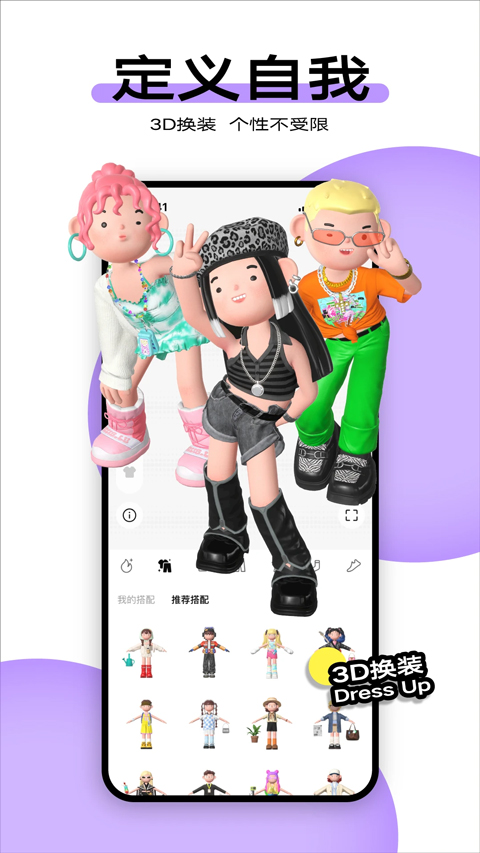 允许用户创建个性化的3D虚拟形象,这为用户提供了一个全新的社交体验。用户可以根据自己的喜好调整五官、发型和服饰,打造独特的个人形象,使社交互动更加生动有趣。