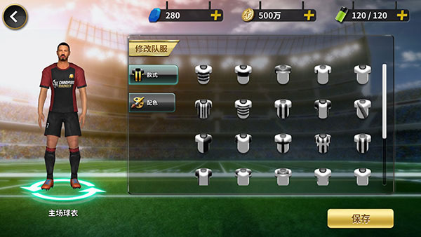 要说队徽象征球队的传统与荣耀、那球衣就是一个球队的标志与灵魂了。在设置中可修改球队的第一、第二球衣,系统同样将经典的横条纹、竖条纹、绶带式等经典款式都给你准备好了,加上曼联的魔鬼红、皇马的贵族纯白,尤文图斯优雅的黑白条纹,巴萨热情如火的红蓝配色……真的很有代入感呢!设定好了队服就把球员训练成让人闻风丧胆的大军吧!