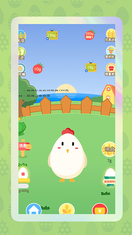 2、领取一只小鸡,经过精心呵护来护养长大,然后去兑换精美礼品。