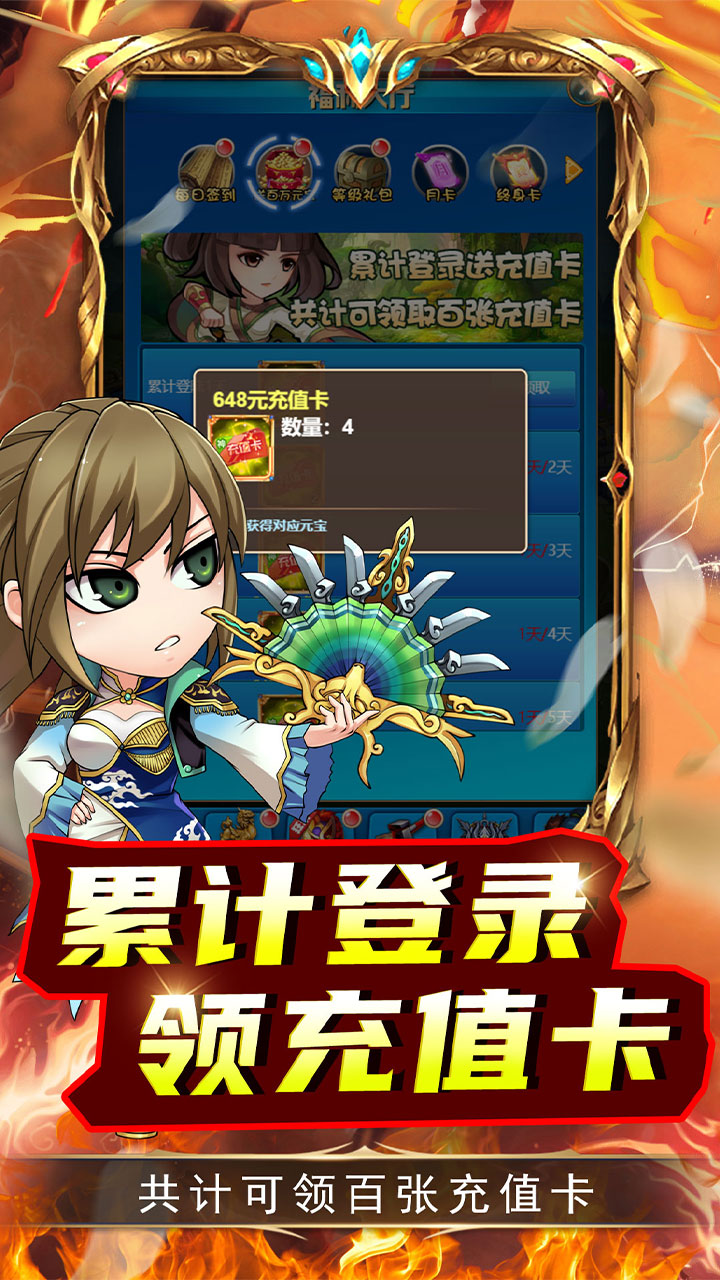 上线即送VIP12、100w元宝、188w绑元、1亿铜钱