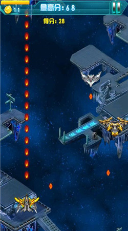 有丰富的游戏道具,玩家只用手指就可以操纵自己的飞机在宇宙中射击敌机,同时躲避对方的攻击,只有具有敏锐观察力的人才能获得最高的分数