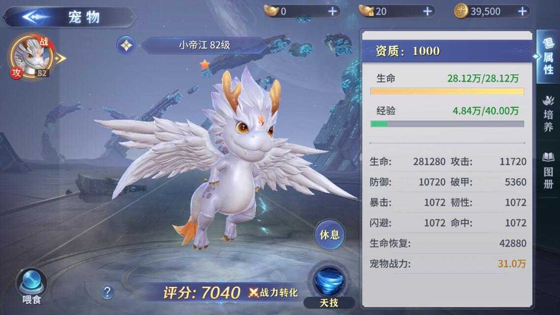 获取宠物后将其设置成出战状态,然后就可以通过喂食来提升宠物的防御、暴击、闪避等属性了