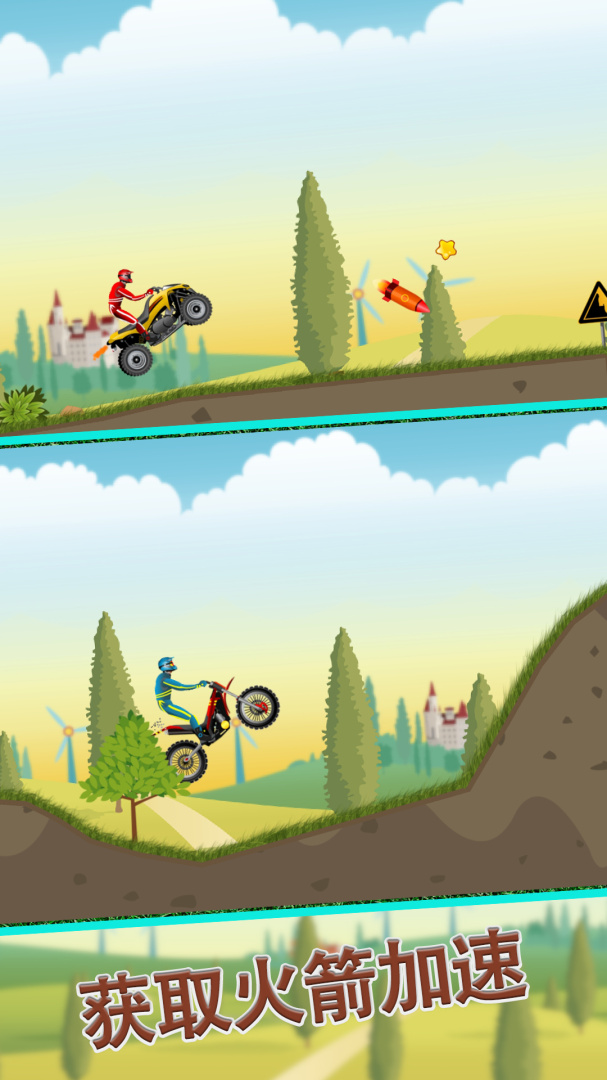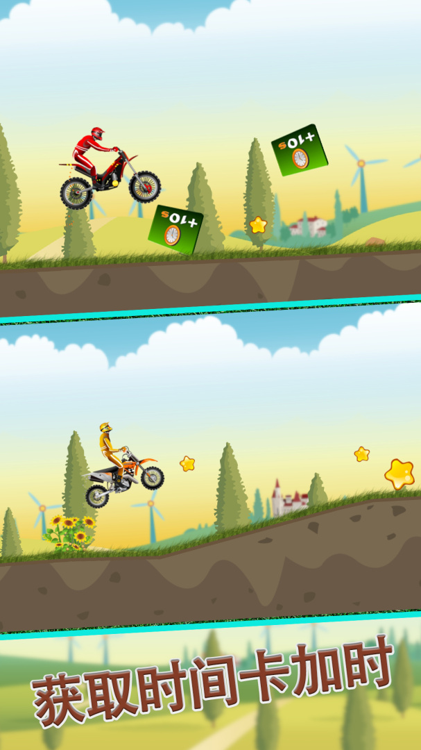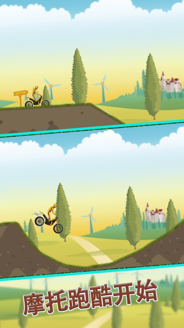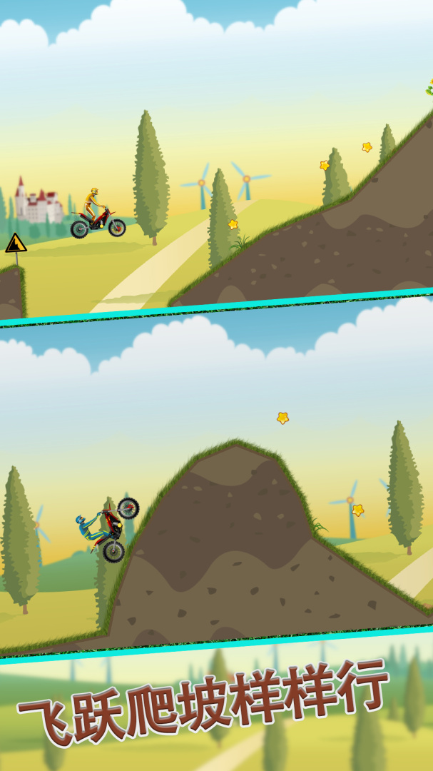 你需要驾驶着摩托车进行各种路况的比赛,要小心,不然,你很可能会掉入坑中,游戏场景好像奔驰在乡间的田野上,十分的舒服