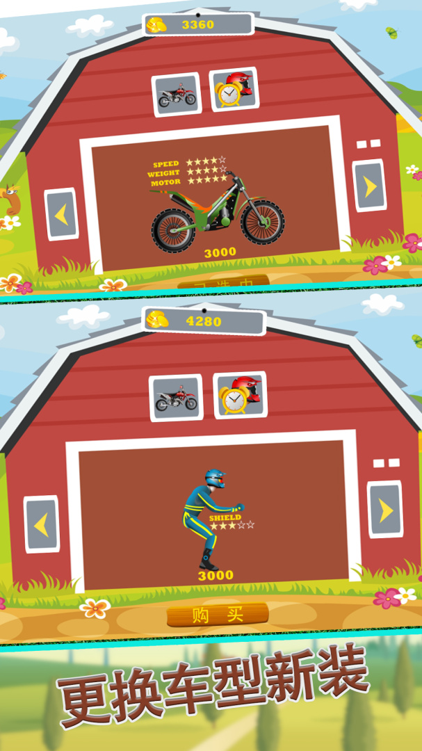 玩家可通过收集金币解锁新的摩托车、人物皮肤和道具,提升游戏体验及个性化玩法,让游戏更加有趣。