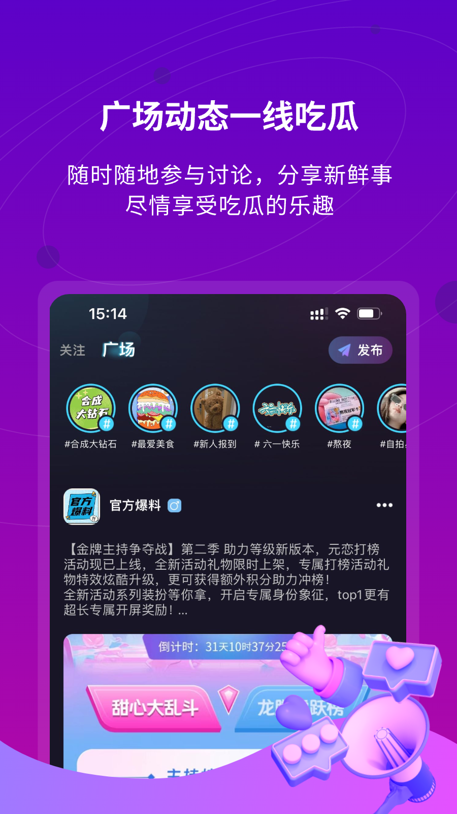 让你探探同城附近陌生人一起语聊,让cp恋爱更甜蜜,漂流瓶让单身的你也能拥有soul男女朋友。