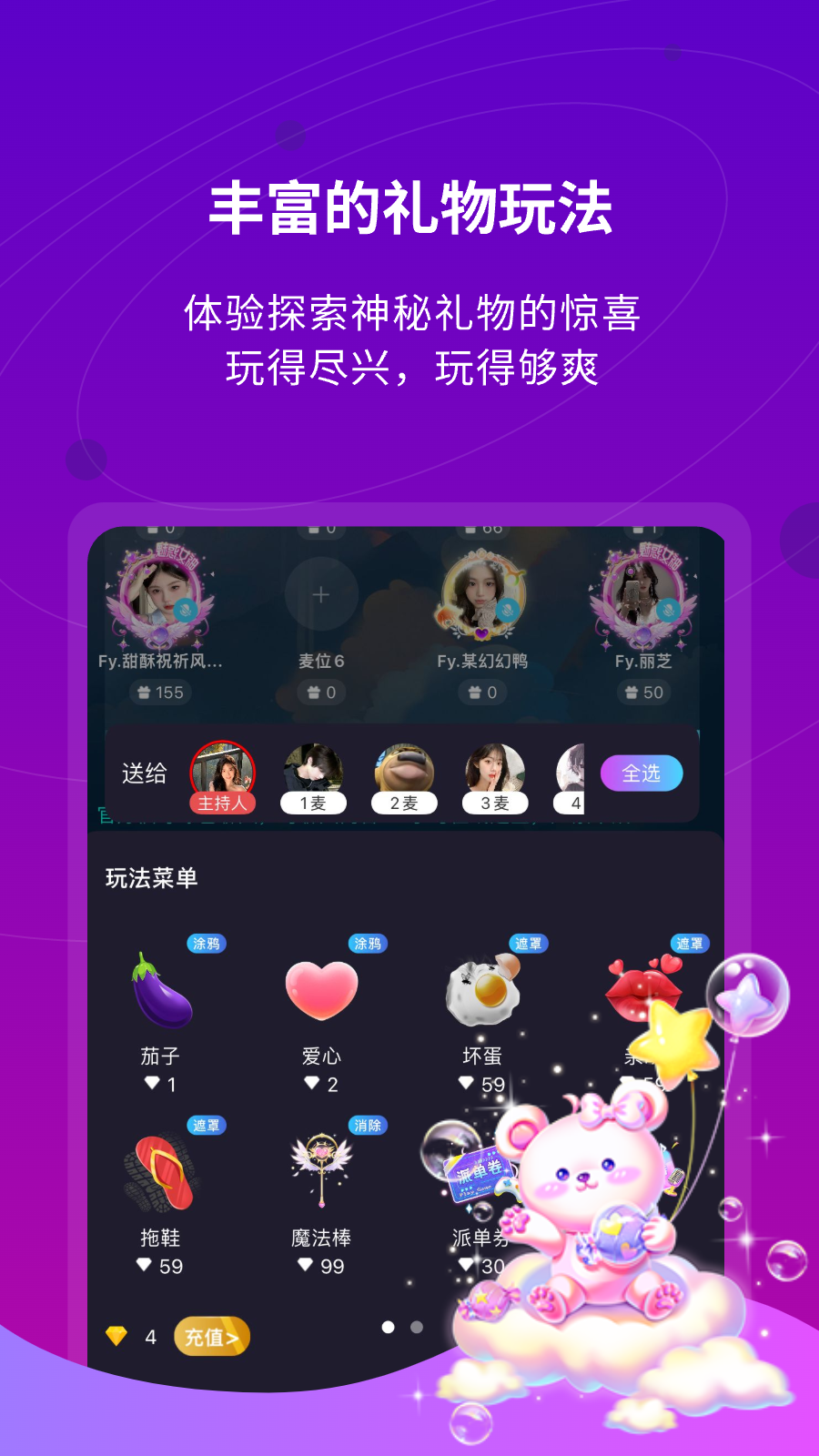 游戏开黑连麦唱歌约会玩语音聊天样样都行。