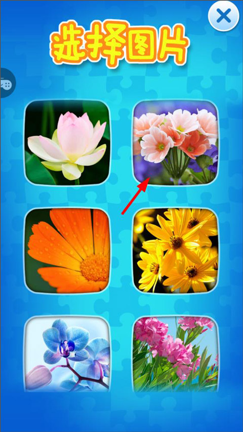 4、例如花卉主题中有各种不同的花,玩家随意选择其中一种花卉开始拼图;