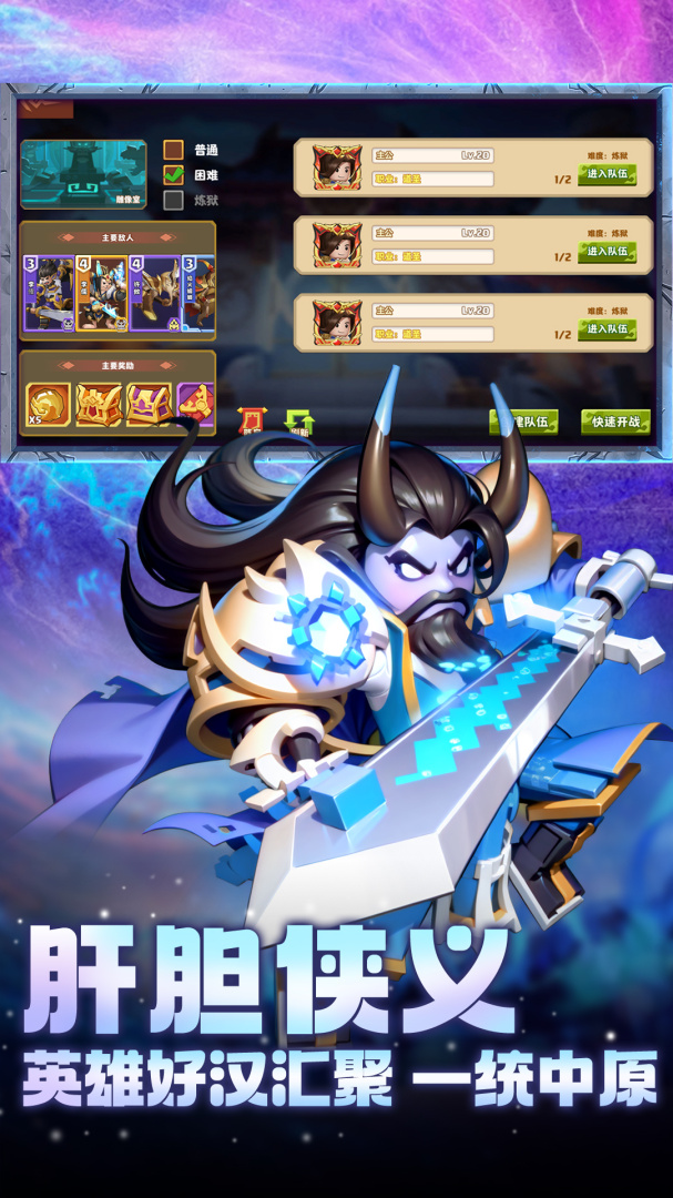 需要一点策略的“动作”挂机游戏(点屏幕点技能,手指动不停...),横屏真的蛮少见的,让怪能走过来我也是头一次见到,但体验下来还是挺紧张刺激,一边给武将换阵,一边放技能,还要点屏幕。之所以说策略是因为不同武将对不同位置有加成,表示已经在求最优解的路上停不下来了