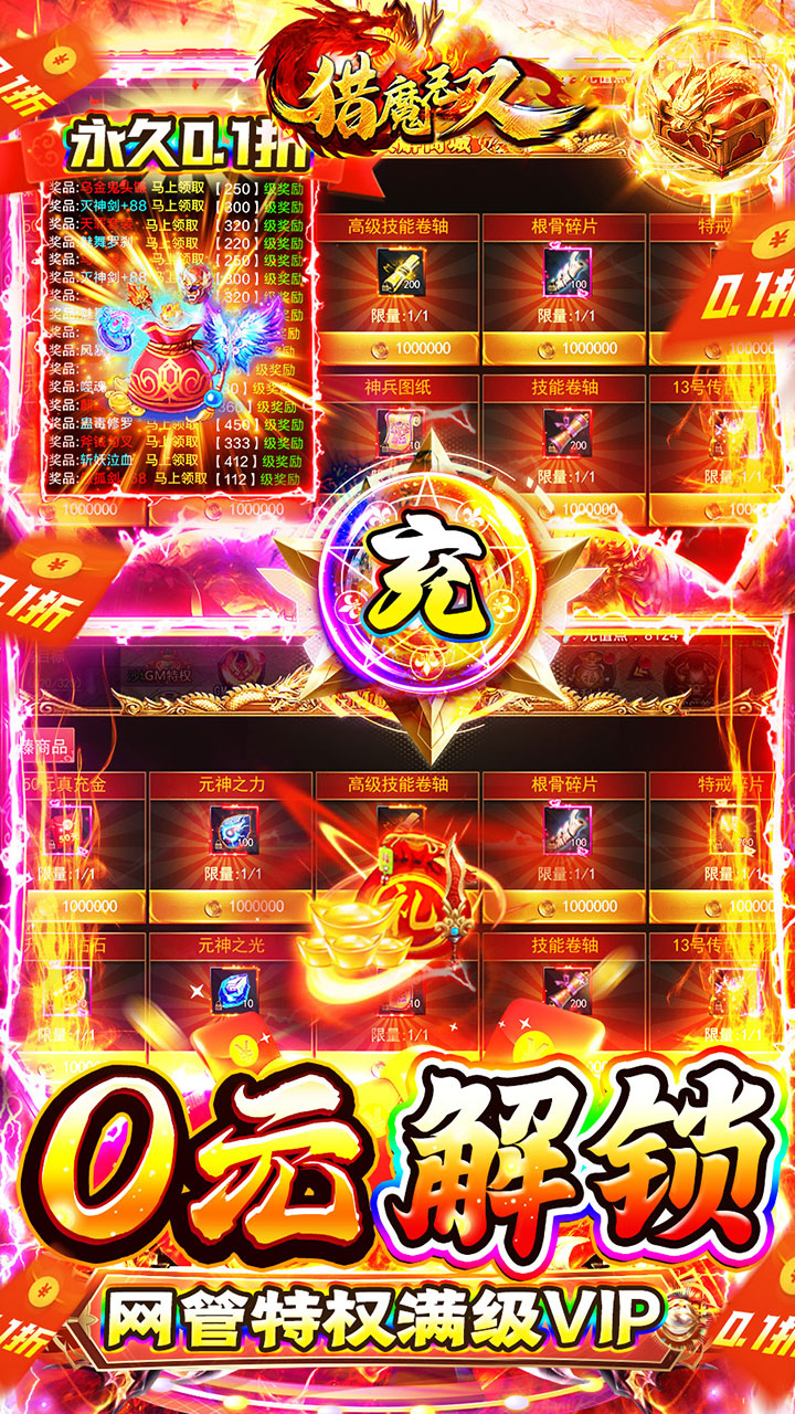 《猎魔无双(0.1折热血刷充版)》是一款动作冒险手机游戏,玩家将扮演一位勇敢的猎魔者,在神秘的世界中追踪、捕捉各种恶魔和妖怪,游戏中玩家需要利用各种技能和武器来应对挑战,并揭示隐藏在背后的真相,玩家可以自由选择任务和探索地图,解锁新的技能和装备来提升实力,游戏还设有多样化的BOSS战,考验玩家的操作和策略能力,欢迎加入《猎魔无双(0.1折热血刷充版)》,展开一场刺激的狩猎之旅!