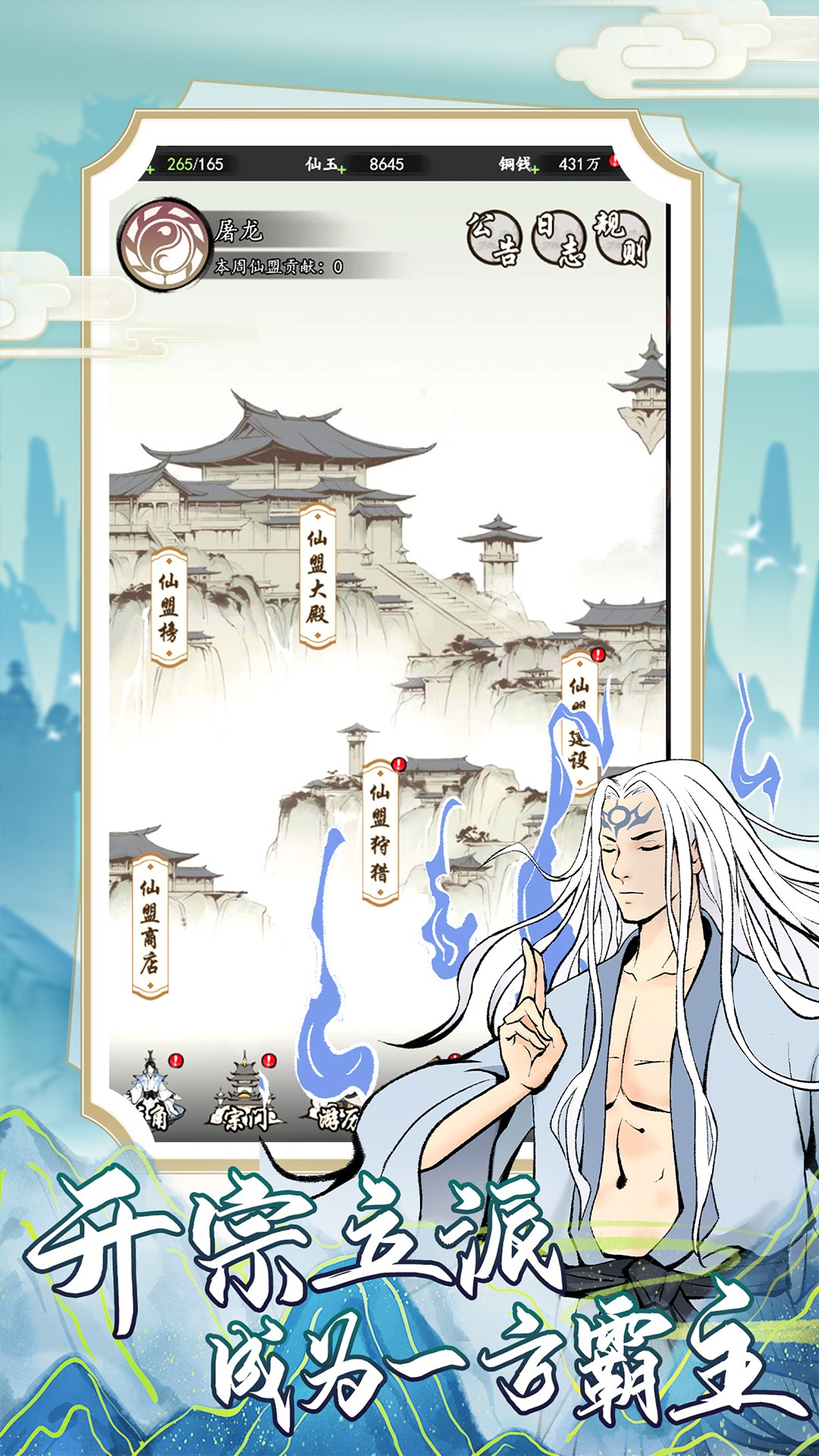 1、屠龙仙缘广泛参考古代神话与传说,创造出一个真实沉浸式修仙世界,让每位玩家亲身体验修仙途中的成就和挑战,收集法宝,提升功法,获得仙号,培养弟子,建设宗门,不断提升修仙境界