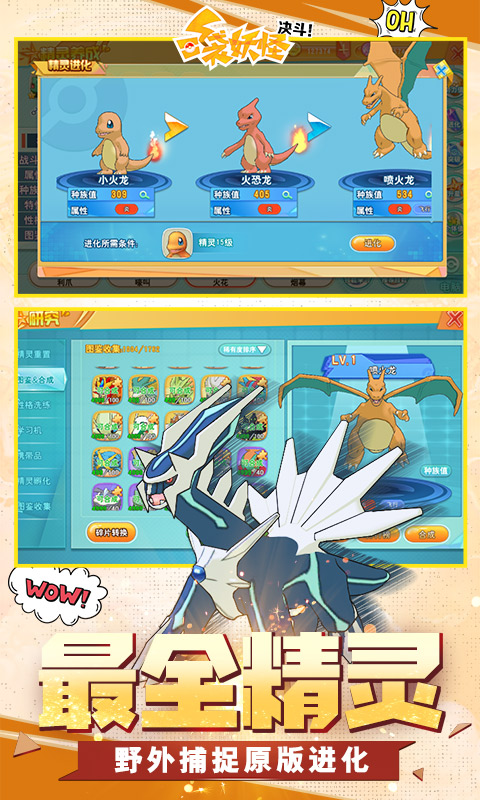 游戏中有数百种不同属性、能力的口袋精灵可供捕捉和培养,玩家可以根据自己的喜好组建强大的战队。