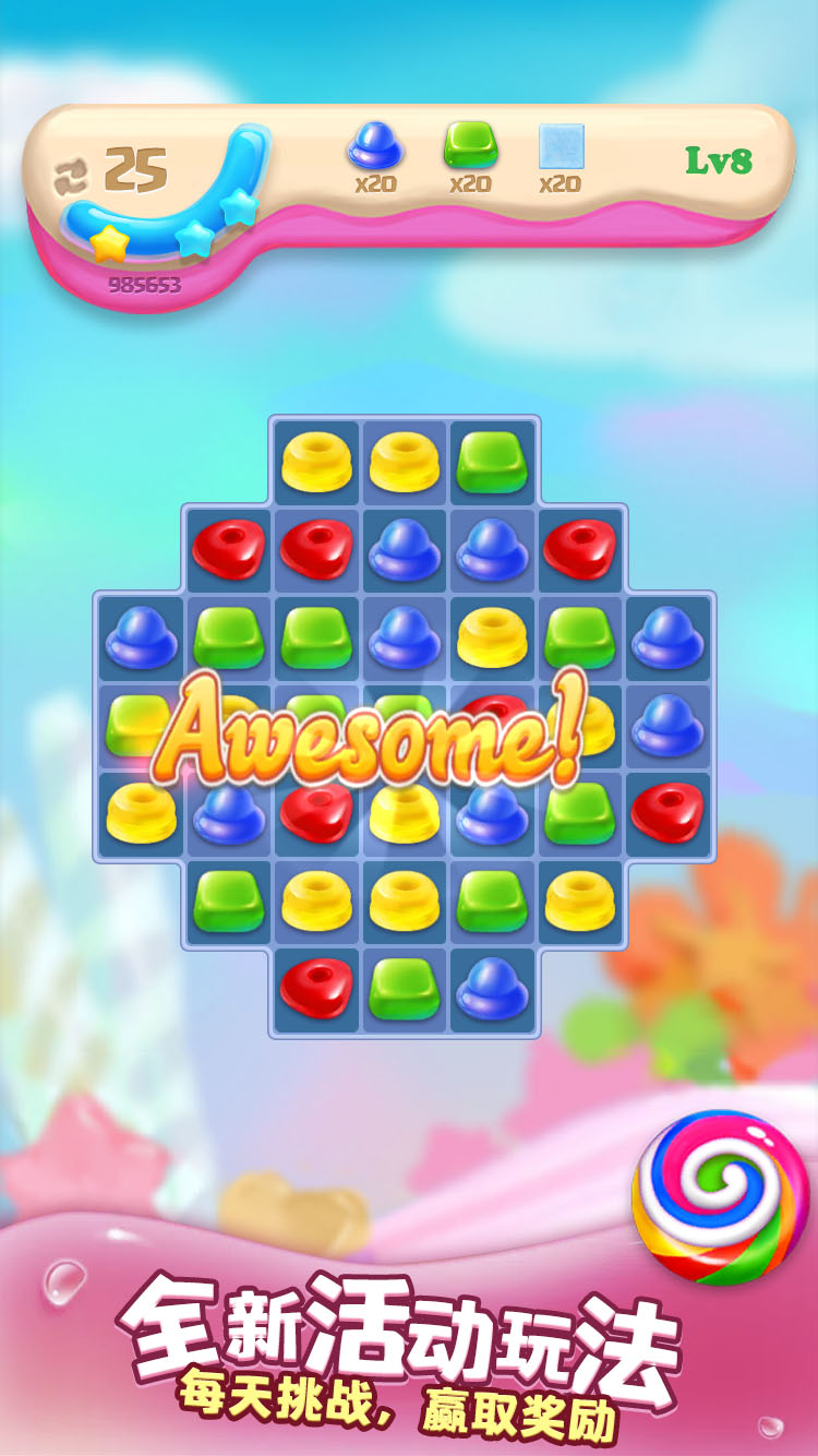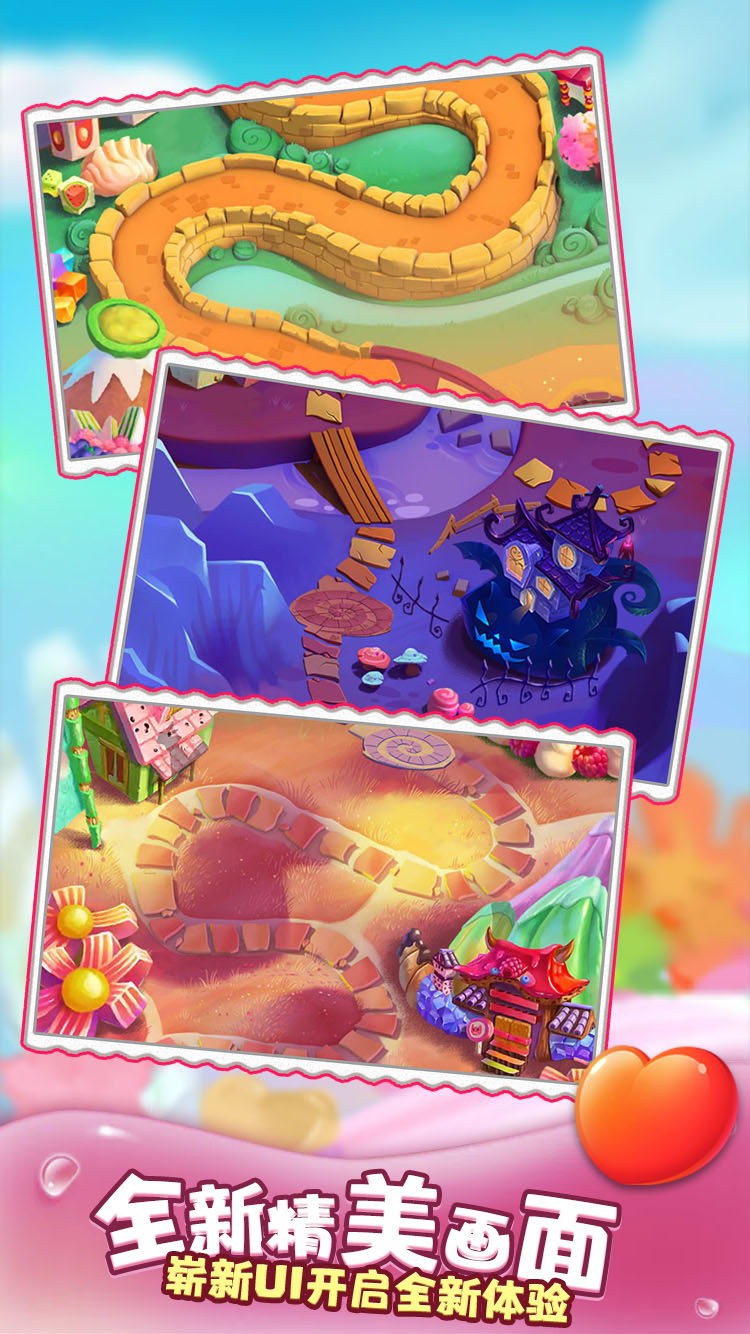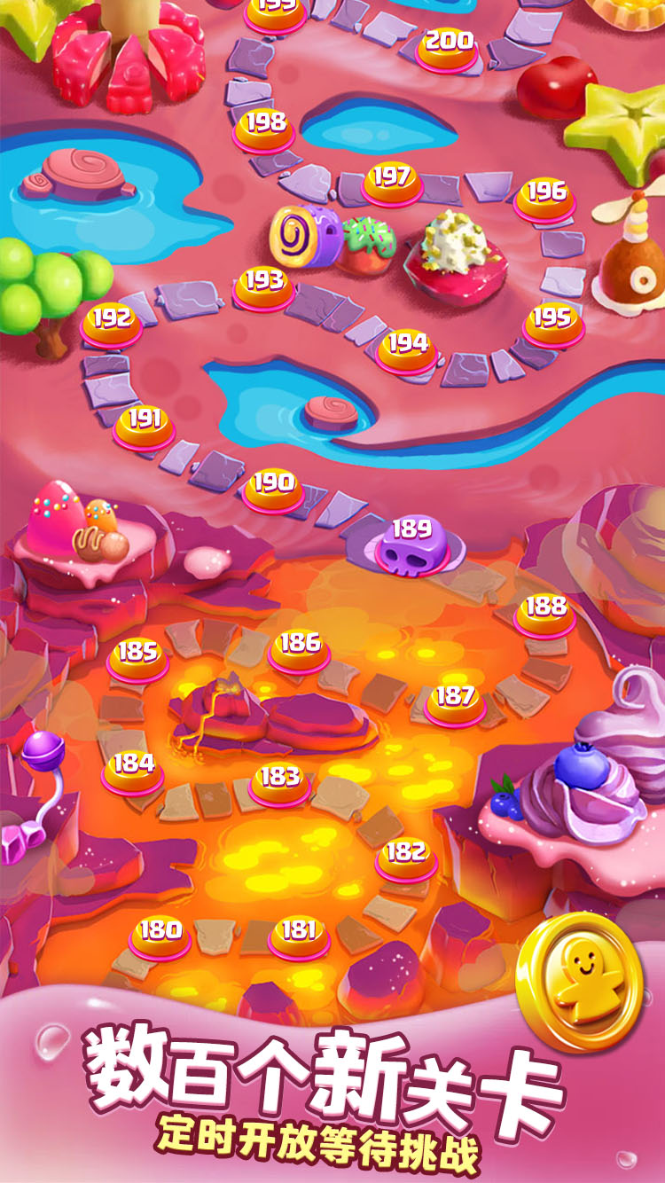 这款游戏有着丰富多样的关卡设计,玩家需要在每个关卡中完成特定的目标,比如消除特定类型的糖果或完成规定步数内的拼图,并且随着关卡的递进,游戏难度也会逐渐增加,让人上瘾又不枯燥。