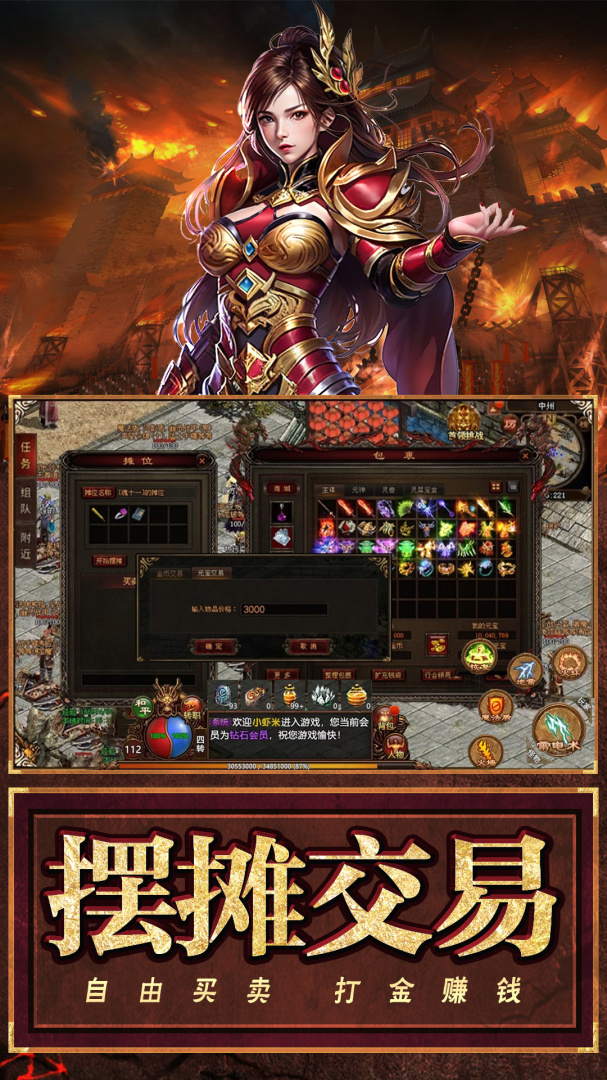 新世界,新副本、新挑战、多重职业,超强套装、神装靠打、超高爆率、满屏光柱、装备变现、自由交易、PK爆物、玩家在这里将不会一个人战斗。