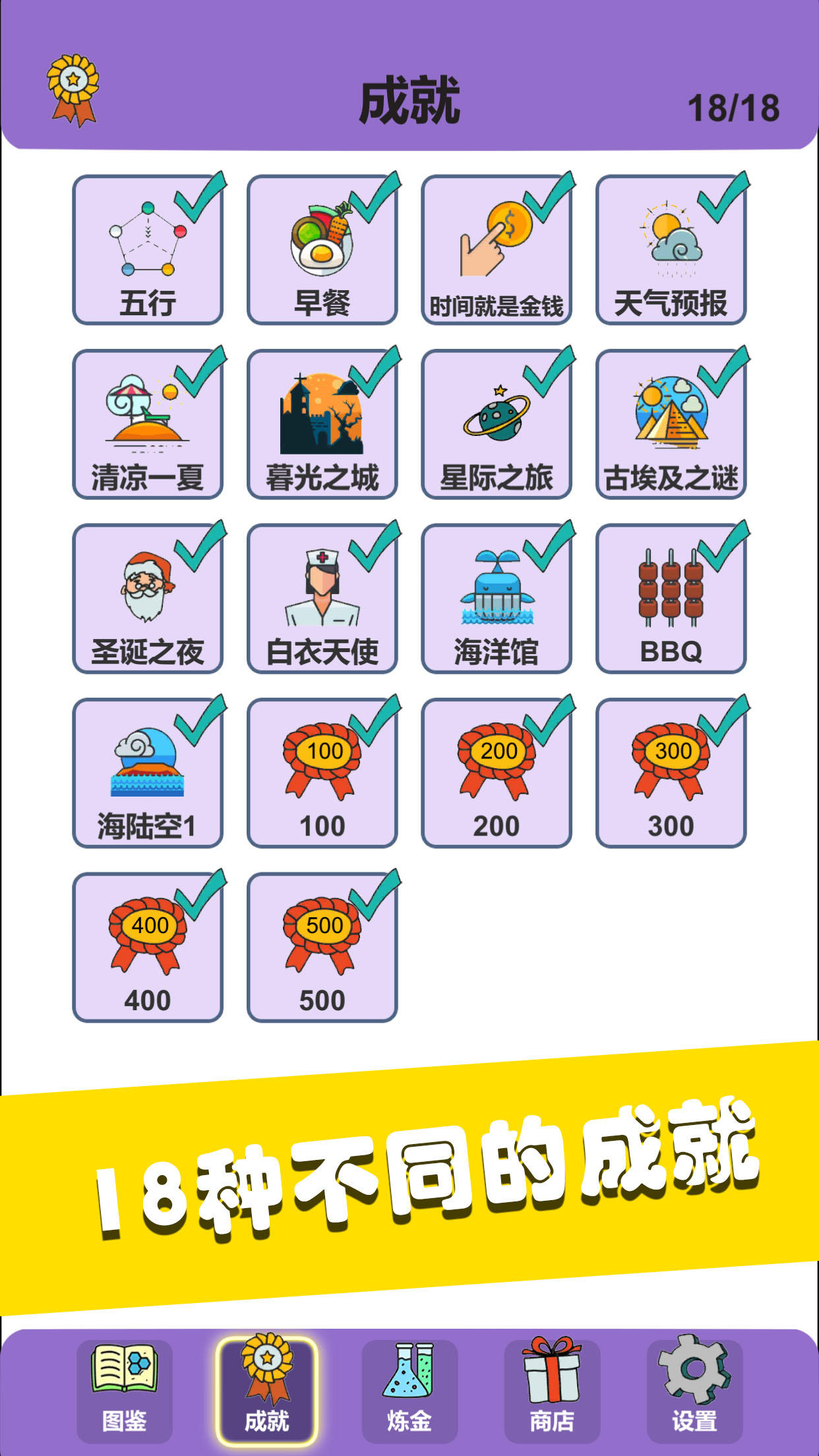 1、一款独特的益智游戏,玩家通过将不同的元素和物质合成为新的物质,来获得新的元素和物质