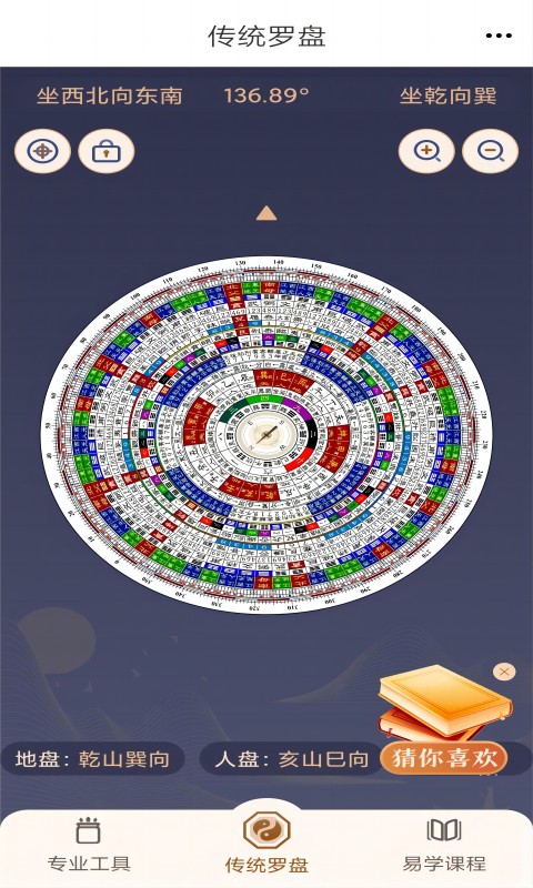 寻龙罗盘,功能齐全的手机罗盘工具,具备传统罗盘功能,提供水平仪、分贝仪、寻龙尺等多种工具,满足用户使用需求,还有大量易学课程,轻松学习