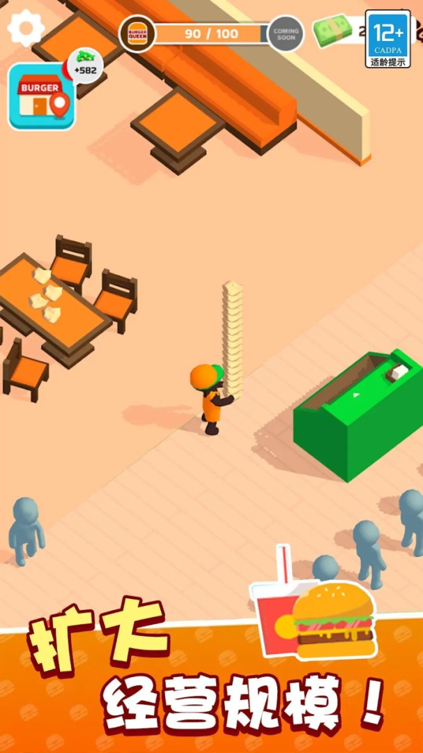 《我的快餐店》是一款模拟经营类手机游戏,在游戏中,玩家将扮演一位快餐店老板,负责经营和管理自己的快餐店,玩家需要处理订单、烹饪美食、拓展菜单、装修店铺,并且时刻关注顾客的需求和满意度,通过不断提升服务质量、调整菜品搭配、招聘员工等方式,吸引更多顾客光顾并赚取利润,玩家还可以参加各种比赛和活动,提升自己的厨艺水平并与其他玩家进行竞争,《我的快餐店》让玩家体验经营快餐店的乐趣,挑战经营技能,打造属于自己的成功快餐帝国。