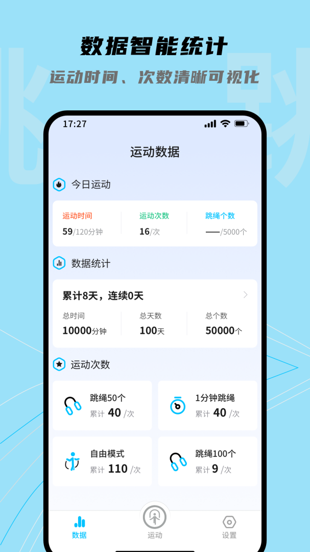 1、精准跳绳数据记录,帮助用户科学合理地制定训练计划
