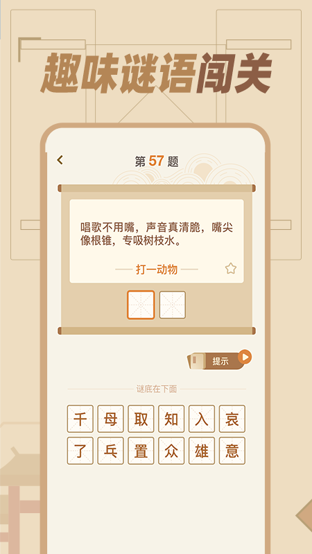 游戏中拥有海量的谜语题目,涵盖了各种类型的谜语,保证玩家无论是喜欢字谜、物理谜、成语谜还是逻辑谜都能找到自己喜欢的题材。