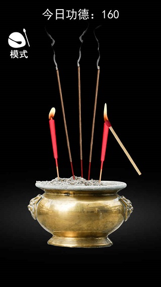 2、休闲减压的敲木鱼游戏,拟真的木鱼可以自由的敲击,听一听佛经有着心灵净化的感觉