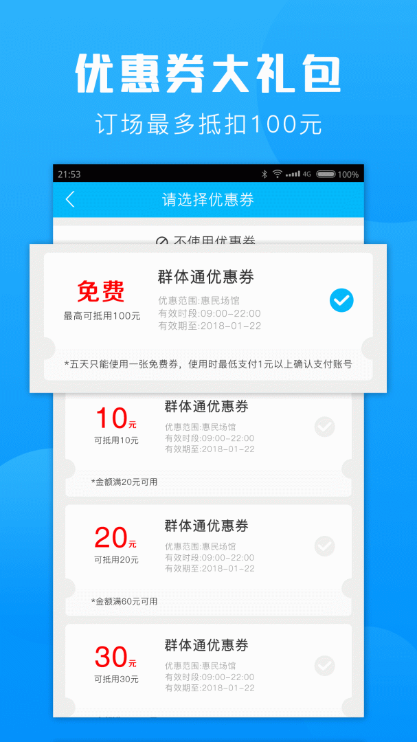 使用群体通,你就能快速的发现符合你要求的最近的场地。同时还有海量的场地优惠券等你来拿哦,觉得这款软件还不错的朋友快来下载吧