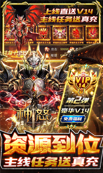 顶级次世代手游巨作神怒来临,超清级画面带给你机制的游戏体验,炫酷坐骑,华丽羽翼,顶级的打击感,万人战争,千人军团,超震撼的战争体验。还在等什么