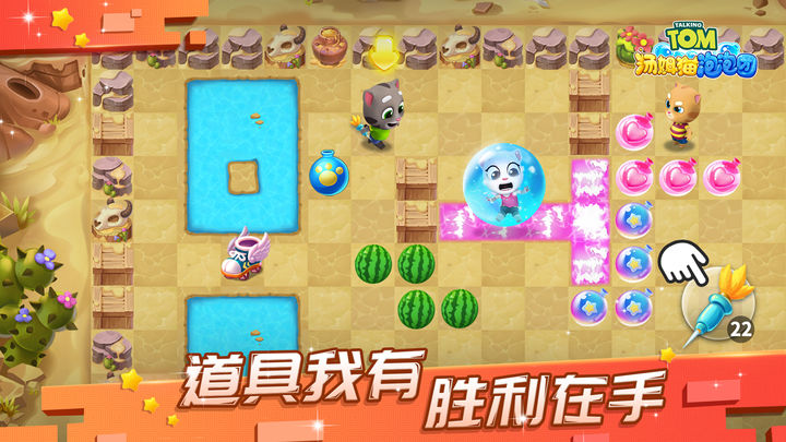 3、经典泡泡堂的汤姆猫版本,游戏中你可以选择你喜欢的汤姆猫家族成员开始游戏
