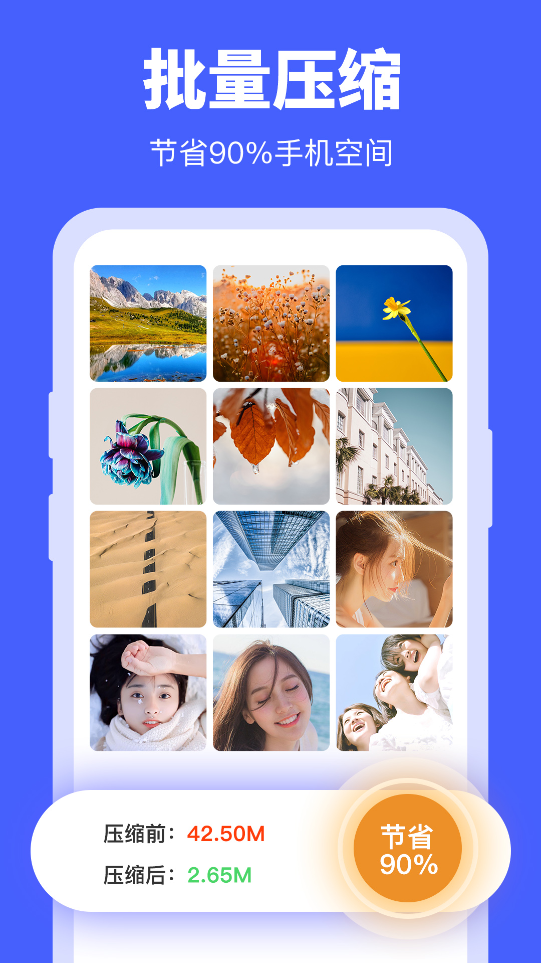 压缩后的照片体积更小, 方便快速上传到社交平台或分享给朋友,节省用户上网时间。