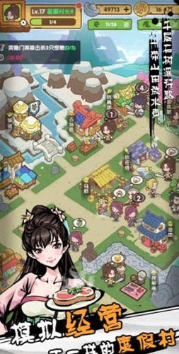 3、卡通画风设计,很多的角色解锁,规模扩大,不断的进行经营下去