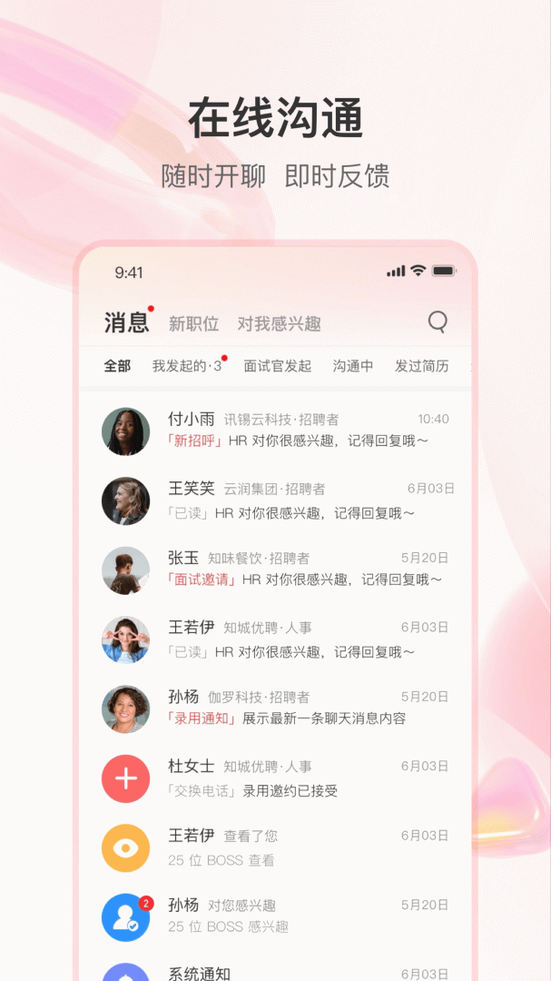 实时的职位更新和面试通知,让求职者不错过任何一个机会。