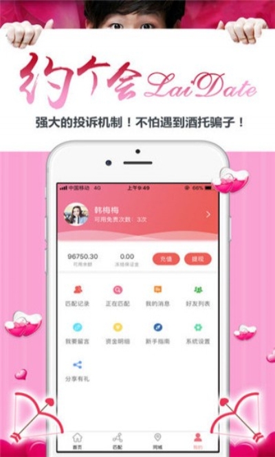 约个会app是一款线下约会客户端应用,在约个会手机版上匹配成功就可以直接约见真人,约个会采用保证金机制为线下约会提供保证,并且约会完成后立即退还保证金。