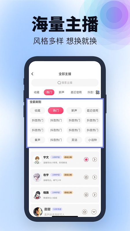 5、APP有近百种声音,多种风格变化,总有一种符合您的配音要求