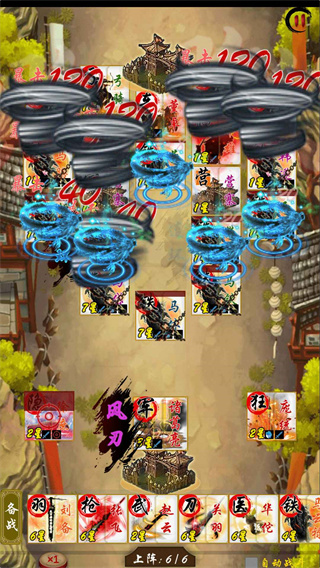 3、你可以在棋牌上排兵布阵。无限连斩的大刀关羽,穿刺后排的长枪张飞,横扫前排的大戟典韦,将战场烧成火海的统帅周瑜,召唤落雷的术士张角…