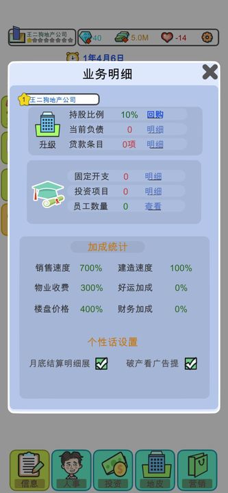 4、游戏中的地产市场、房屋建设、租金收入等设计力求真实还原,玩家可以感受到真实的经营挑战和决策困境