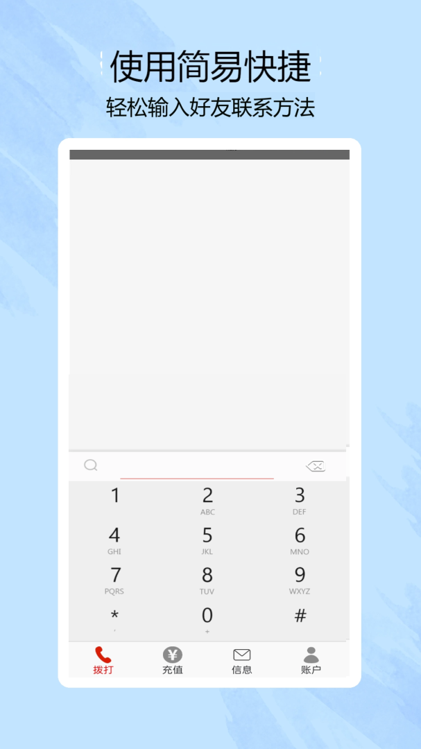 5、一键通话,对方免安装,无月租,无流量消耗,仅接通瞬间几Kb流量,支持3大运营商任意号段手机座机
