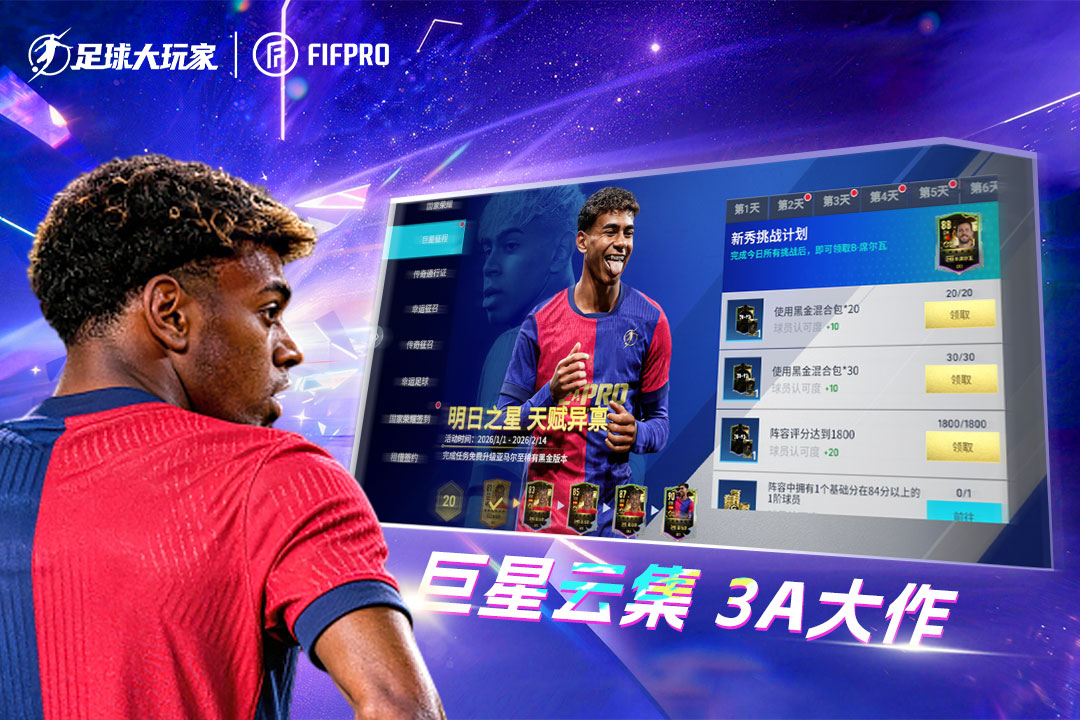 3. 巅峰征召:每日免费抽取主题球员,有机会解锁红蓝传奇球星!