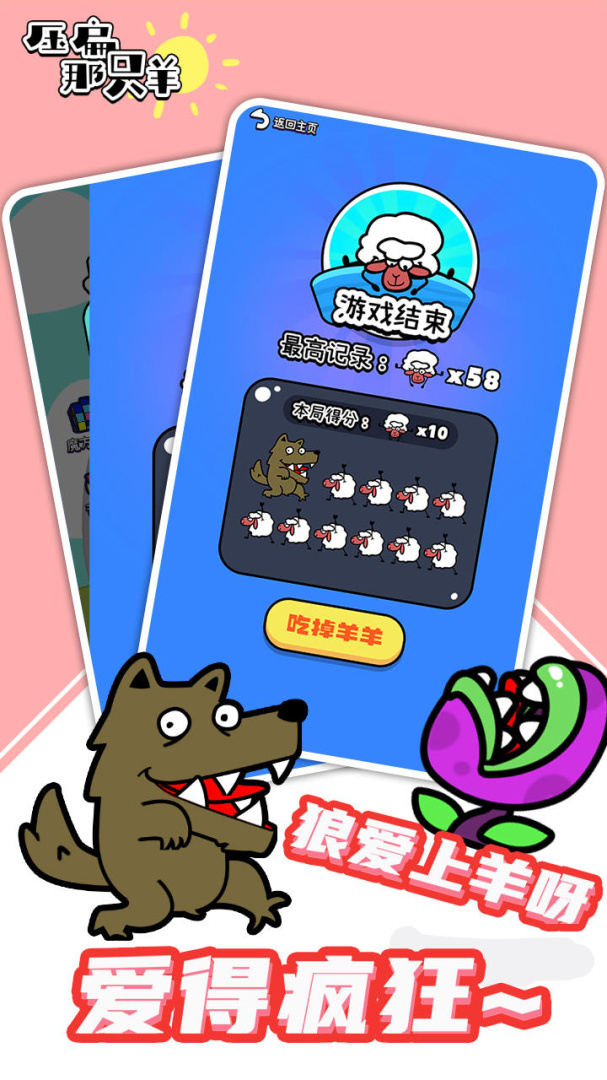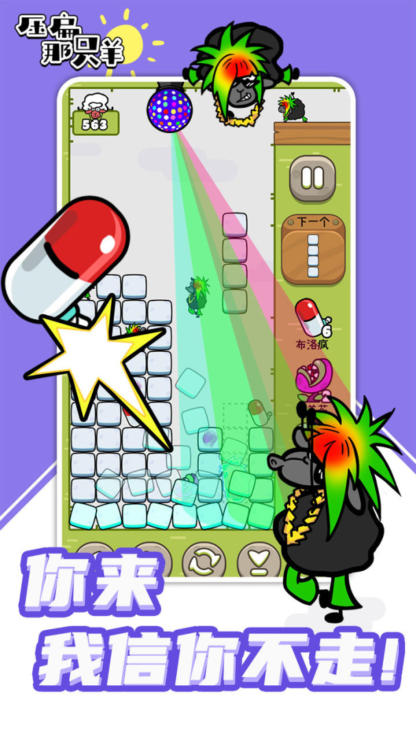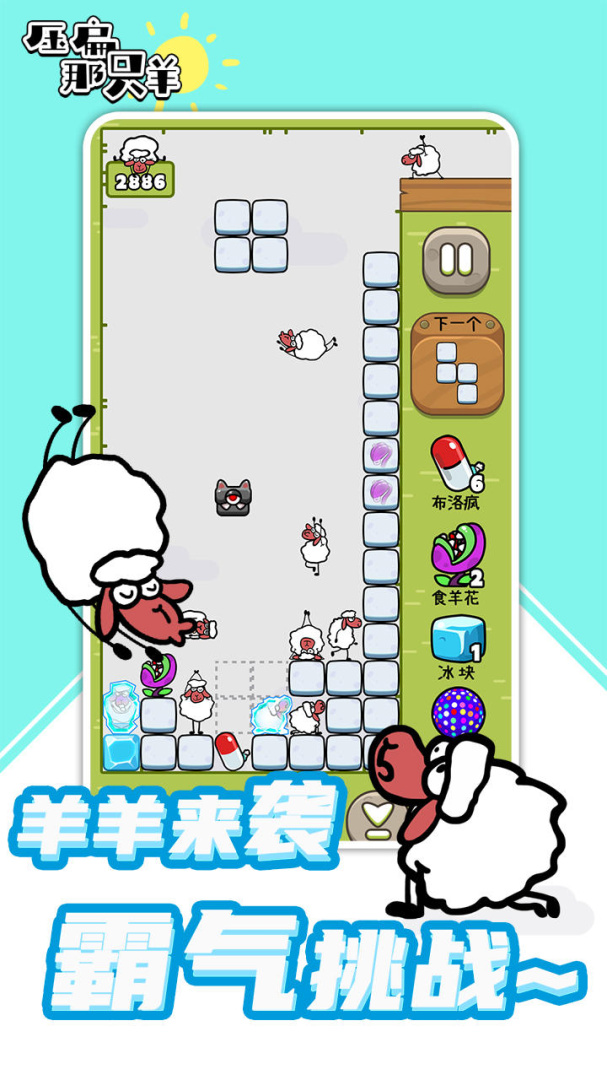 1、压扁那只羊结合了传统俄罗斯方块玩法,又有动作形态多变,非常机智会闪躲的小绵羊