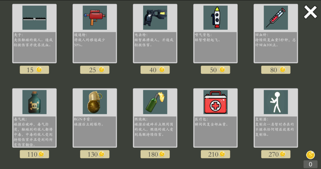 极简格斗,多人格斗通关小游戏。玩家将操控黑白小人,合理搭配不同的武器道具,左右移动上下跳跃通关,解锁更多的武器使用看看吧