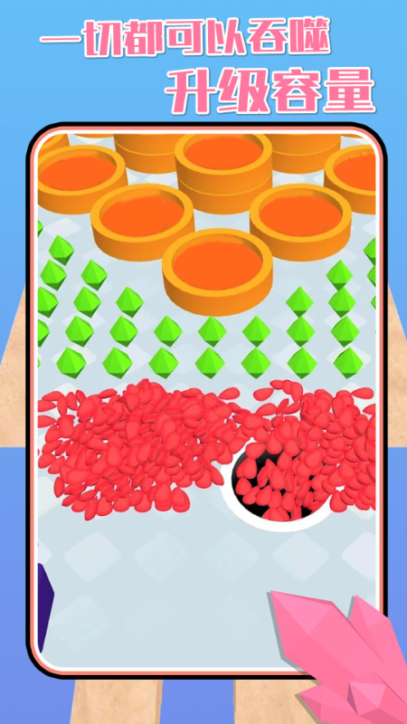 游戏画面十分精致,卡通风格的游戏玩法让你体验最好玩的掌上历险;每吞食一个物品你的生命值就会相应的增长,在这里施展你的吞食计划;吃下你所能够见到的一切,最让人上瘾的游戏,享受吞吃逃跑的乐趣。快来加入进入竞技场,面对激烈的战斗中的其他洞;慢慢的将你的黑洞扩大,不断的吃掉身边的一切。